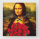 Relógio Quadrado Mona Lisa Com Buquê De Rosa vermelha