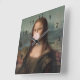 Relógio Quadrado Mona Lisa soprando pastilha elástica rosa