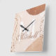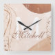 Relógio personalizado lindo, único e feito sob medida apresenta um design abstrato em creme, marrom e dourado com o seu sobrenome personalizado em uma fonte cursiva sobreposta e o monograma inicial do sobrenome em uma fonte negrito. Personalize este relógio adicionando suas próprias informações pessoais. Faz um ótimo presente de casamento, aniversário ou mudança. Clique em "personalizar este modelo" para alterar os nomes, fontes e cores e criar um design único e feito sob medida. Que acessório elegante para sua sala de estar, quarto ou sala de família. Se precisar de ajuda com a personalização, por favor envie um e-mail para ybnormalone@gmail.com. Obrigada por visitar www.zazzle.com/Personal_Creations. ©Karen Hall para Personal_Creations na Zazzle.