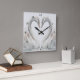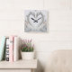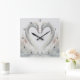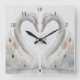 Crie um souvenir especial para sua casa. Este relógio de parede quadrado com monograma apresenta cisnes românticos. Cores neutras. Personalize os monogramas exibidos no centro. É um ótimo presente, presente de casamento, presente de aniversário de casamento e muito mais. Use o modelo para criar seu próprio relógio de parede com monograma de cisne romântico.