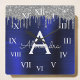 Folha azul de prata e Marinho Folha azul escamoteada Metálica Brilhante Lâmina esmagada Monograma e Relógio de Parede de Luxo Inicial. Isto faz o doce e perfeito aniversário de 16 anos, casamento, chá de panela, aniversário, chá de fraldas ou festa de solteira presente para alguém que ama luxo de luxo e estilos quíticos.