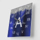 Relógio Quadrado Monograma de metal com Marinho de prata azul com b