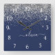 Relógio de Nome do Monograma do Script Glitter Glitter Azul Silver e Marinho Azul Sparkle. Isto faz o doce e perfeito aniversário de 16 anos, casamento, chá de panela, aniversário, chá de fraldas ou festa de solteira presente para alguém que ama luxo de luxo e estilos quíticos.