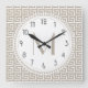 Relógio Quadrado Monograma grego | branco natural do teste padrão