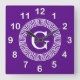 Relógio Quadrado Monograma Inicial do Quadro-Chave Grego - Purple W