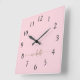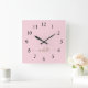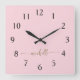 Relógio de Parede Quadrado Personalizado Feminino Simples com Nome Monograma em Rosa Bege e Grafia Dourada. Estes desenhos apresentam seu primeiro nome em uma linda tipografia de letra manuscrita com cauda swash em cor dourada sobre um fundo rosa bebê claro ou rosa bege. Fácil de personalizar. Ótimo presente feminino e elegante para aquecimento de casa, também para aniversário, chá de noiva, dia das mães, casamento, festa de 16 anos e chá de bebê, formatura. É para a garota que ama coisas únicas e elegantes com brilho.