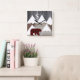 Relógio Quadrado Montanhas Rustic Snowy Monograma do Urso de Búfalo