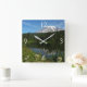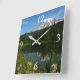 Relógio Quadrado Monte Rainier Lake Refletido com flores selvagens