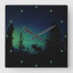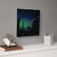 Moose in silhouette at twilight in a small clearing surrounded by evergreen trees
