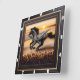 Experimente a beleza impressionante de um cavalo Morgan correndo ao longo de uma praia de ouro ao pôr do sol, capturado numa obra de arte espantosa que traz o espírito de liberdade e aventura para dentro de sua casa. Esta bela imagem é enquadrada por uma borda de madeira preta e plana de meia polegada, melhorando a sua elegância, ao mesmo tempo que proporciona um contraste notável às cores vibrantes do pôr do sol e da margem arenosa. A madeira embutida apresenta entalhes profundos com um grão cardado, texturizado, adornada com marcas de queimadura robustas em tons de vermelho, cinza e preto, criando um visual cativante que desenhar o olho e acende a imaginação. Perfeito para aqueles que apreciam a arte e a personalização, esta criação exclusiva permite personalizar o relógio usando a Ferramenta Design, onde você pode selecionar de uma variedade de números de cores e estilos de fontes para corresponder ao seu gosto individual. A opção de mudar o número de cor branca para um espectro de tons garante que esta peça não só sirva como peça de tempo funcional, mas também como reflexo do seu estilo pessoal. Com seu design meticulosamente trabalhado que simula a aparência da madeira esculpida, esse trabalho de arte oferece um encanto rústico que melhora qualquer espaço, fazer-o como uma adição perfeita à decoração de sua casa ou escritório.