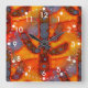 Relógio Quadrado Mosaico Laranja Roxo Sudoeste Saguaro Cactus