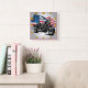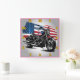 Relógio Quadrado Motocicleta com pano de fundo de bandeira american