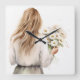 Arte aquarela de uma jovem com buquê margarida sobre fundo branco.
