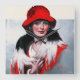 Artista:Neysa McMein | Mulher de chapéu vermelho e pele