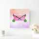 Relógio Quadrado Na moda moderno, Buterfly Rosa, Clover Verde