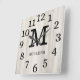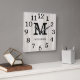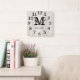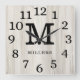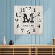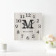 Relógio Quadrado Natural Wood Large Numbers Family Name Monogram
