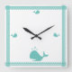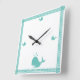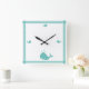 Relógio Quadrado Náutica costeira de Stripe de Baleia Azul-Teal Árt