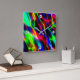 10,75 pol x 10,75 pol de relógio preto de parede em acrílico com uma imagem incrível de ondas de luz neon arco-íris em preto. As órbitas brancas marcam as 12, 3, 6 e 9 posições. Dica: Para tornar as mãos mais visíveis, opte pelas mãos da cinza ou pinte-as de branco. Veja toda a coleção Tubular 80s Clock no DÉCOR | Seção Relógios.