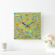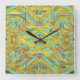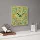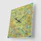 Relógio Quadrado Nesting Abstract Backwards Clock Yellow and Aqua