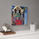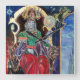 Pintura colorida, vibrante e contemporânea em cores dourada, azul, vermelha, verde, castanha. Um misterioso feiticeiro hipnótico com fantasias elegantes de veludo vermelho segurando uma esfera mágica sentada num trono gótico com gargantas e coruja. Ambiente é surreal, fantástico, alquímico onde você vê um testículo é bebendo de uma xícara, um monge templar voando sobre um sapo, bolhas transparentes, paisagens de fantasia com fogo infernal, céu azul cósmico com estrelas, montanhas do céu, árvores .Egg Tempera em um painel de madeira com folha de ouro. 1989, Miniatura Feita com técnicas pictoriais de 1300 por Alessandro Lumini (c) É também uma bela design de fantasia para Natal, Férias, Aniversário, Dia da Véspera de Ano Novo, Mardi Gras e Saudações de Carnaval.