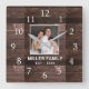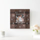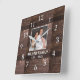 Relógio Quadrado Nome da Família em Madeira Marrom com Foto Persona