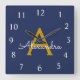 Relógio de Nome do Monograma do Script Azul Dourado e Marinho. Isto faz o doce e perfeito aniversário de 16 anos, casamento, chá de panela, aniversário, chá de fraldas ou festa de solteira presente para alguém que ama luxo de luxo e estilos quíticos.