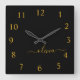 Relógio Quadrado Nome da Rapariga do Monograma de Script Dourado Pr