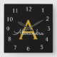 Relógio Quadrado Nome da Rapariga do Monograma de Script Dourado Pr