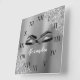 A Brilhante Metálica de Folha de Silver Faux escovou o nome do monograma metálico e as pestanas iniciais (traços), as extensões de Eyelash e o relógio de parede fofo dos olhos. O design faz o doce presente de 16 anos, casamento, chá de panela, aniversário, chá de fraldas ou festa de solteira perfeito para alguém procurando por um estilo legal de tendências.