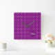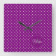 Relógio Quadrado Nome Personalizado de Pontos Violet & Brancos Mono