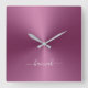 Relógio Quadrado Nome Personalizado Estilo Metálico Magenta Acrílic