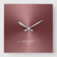 Relógio Quadrado Nome Personalizado Maroon Estilo Metálico Acrílico