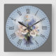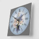 Relógio Quadrado Numeral Romano Flores Branco-Púrpura