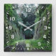 Relógio com uma face quadrada branca de relógio em um plano de fundo da ferrovia. Personalizável. Moderno e moderno, mas clássico, este relógio é perfeito para qualquer decor.