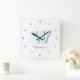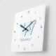 Relógio Quadrado Números de preto Elegante e Monograma Ciano Pastel