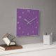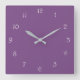 Relógio Quadrado Números de Script Branco em Wcn Roxo