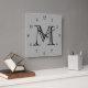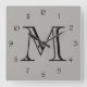 Relógio Quadrado Números de Script Preto Monograma Na Wcn Cinza