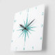 Relógio Quadrado Números de Starburst Atômica Azul Turquesa Meio sé