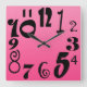 Relógio Quadrado Números divertidos - gradiente rosa chocante