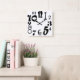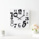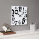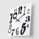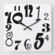Um relógio com números divertidos, em preto e todos os tamanhos e fontes diferentes em um fundo branco. Se desejar, você poderá alterar o plano de fundo para uma cor diferente selecionando a opção "Cor de fundo impressa".