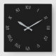 Relógio Quadrado Números romanos de script branco em wct preto