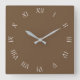 Relógio Quadrado Números romanos de script branco no wcn castanho