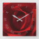 Relógio Quadrado Números romanos do script da Cinza da rosa vermelh