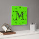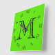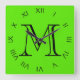 Relógio Quadrado Números romanos preto monograma em wc verde