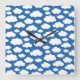 Relógio Quadrado Nuvens Fofas e Azuis no Céu Branco para Crianças