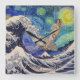 Colagens de arte únicas das obras-primas do mundo, O Nascimento de Vênus por Sandro Botticelli (1445 - 1510), A Noite Estrelada por Vincent van Gogh (1853 - 1890), e A Onda Excelente de Kanagawa por Katsushika Hokusai (1760-1 849).