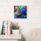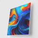 Vejam a fusão cativante de lava feroz e mar legal em tons vibrantes de azul, laranja e vermelho. Adicione um toque de drama ao seu espaço com este trabalho de arte de paisagem de abstrato único.