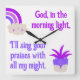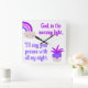 Monograma para que você insira sua própria oração, se você assim o desejar, relógio de parede. Este tema fofo com um arco-íris púrpura e azul, flor e texto num fundo branco, diz, Deus, à luz da manhã, vou cantar as vossas elogios com todo o meu poder.