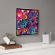 Um relógio com um legal padrão digital 3d. Flores brilhantes e coloridas com um estilo legal que se parece com recortes de papel.