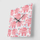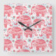 Relógio Quadrado Padrão de Elefante Étnico Vermelho